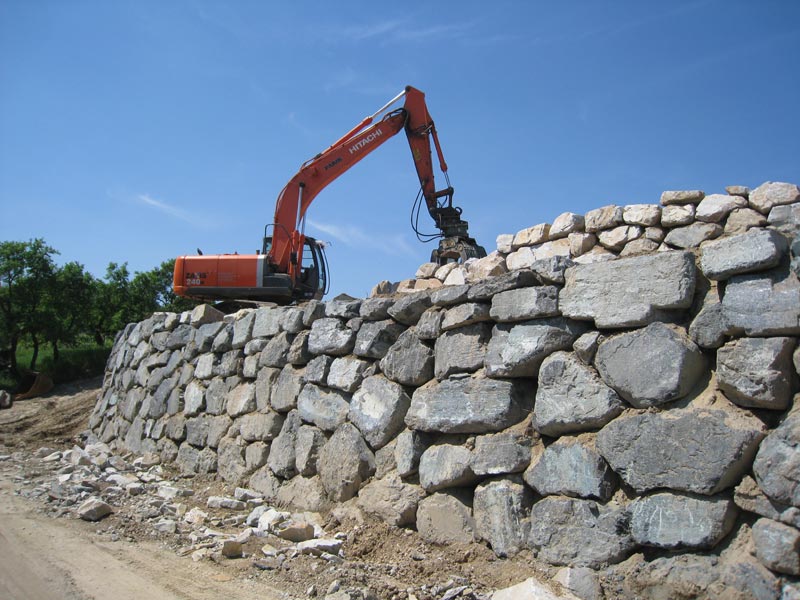 Steinschlichtungen werden von unseren Maschinisten mit großer Sorgfalt verlegt, sie fügen sich harmonisch in die Landschaft ein.