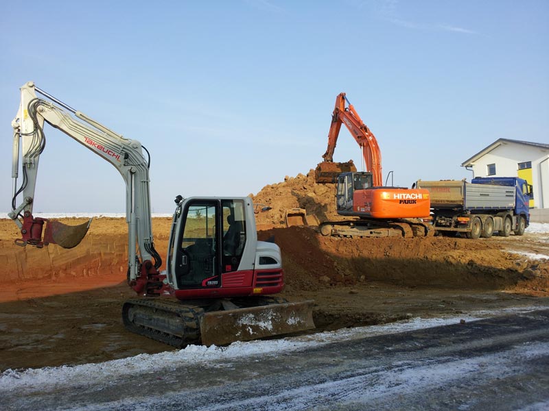 Wir übernehmen Baugrundverbesserungen und tauschen den Boden aus, wir entsorgen selbstverständlich auch das Aushubmaterial.